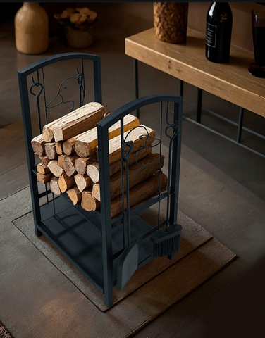 ที่กําหนดเองที่ทันสมัยในร่มชั้นเก็บฟืนเหล็กและเหล็กด้วยไม้สําหรับเตาผิงไฟตกแต่งหลุมโลหะผู้ถือบันทึกฟืน